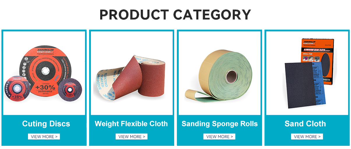 Abrasivi (carta vetrata, tela vetrata), utensili abrasivi (dischi abrasivi in Velcro, cinture infinite in ossido di alluminio, dischi con patta, ruote Cut-Off),
